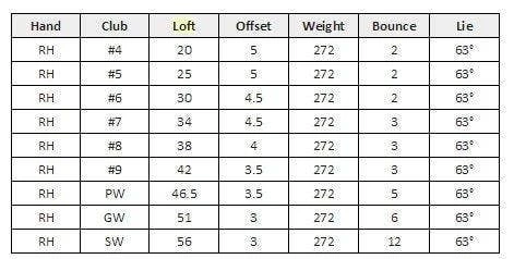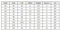 | Number | Loft | Offset | Weight | Bounce | Lie |