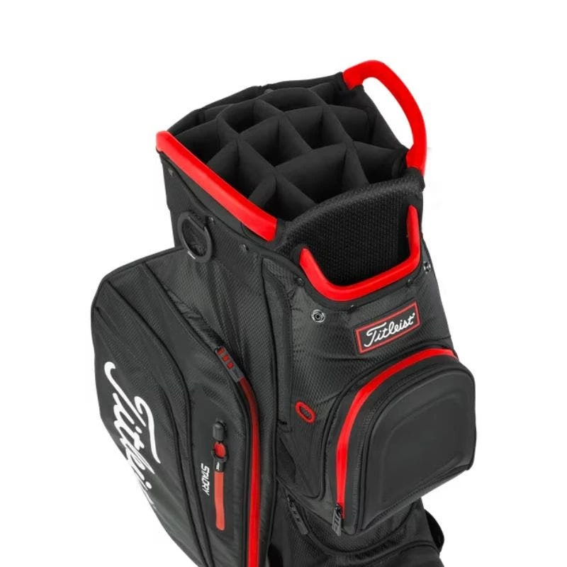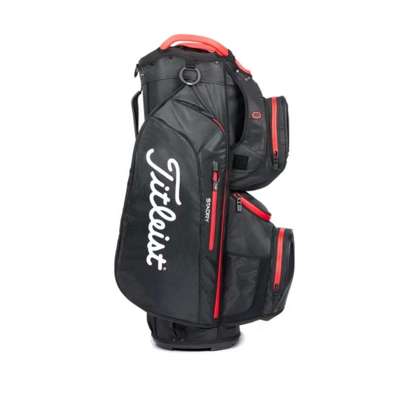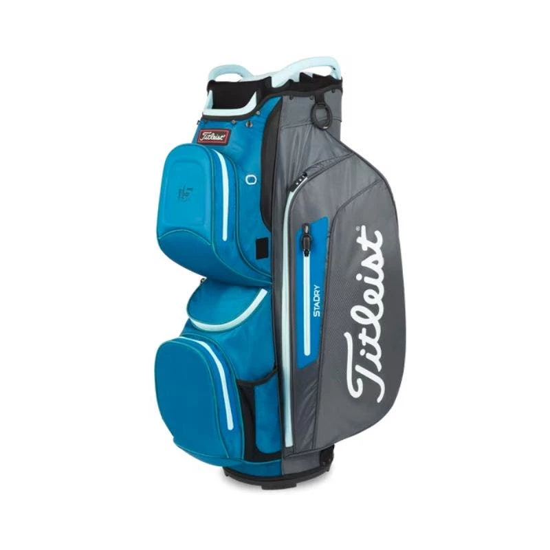 RIDE AHEAD WITH WATERPROOF STORAGE & ORGANIZATION. Waterproof construction along with outstanding organization and ample storage make the Cart 15 StaDry™ Bag an ideal fit for the dedicated golfer who prefers to ride and will play in any conditions.